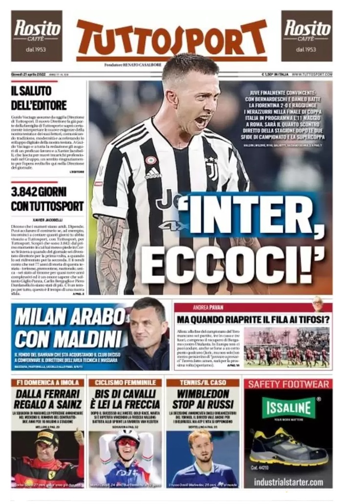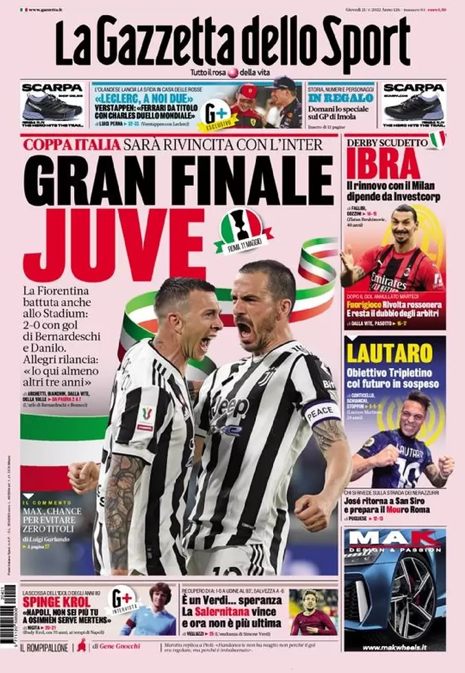 Le prime pagine dei quotidiani sportivi italiani di oggi 22 aprile 2022. La rassegna stampa delle notizie sui rossoneri