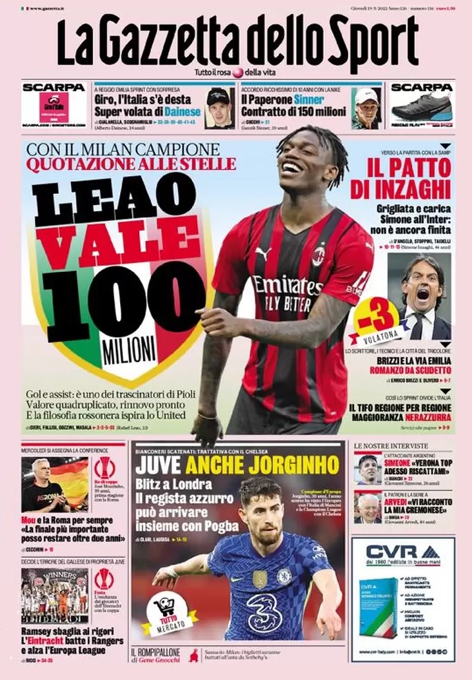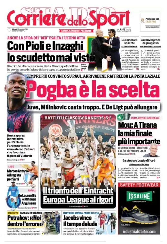 Le prime pagine dei quotidiani sportivi italiani di oggi 19 maggio 2022. La rassegna stampa delle notizie sui rossoneri di Pioli
