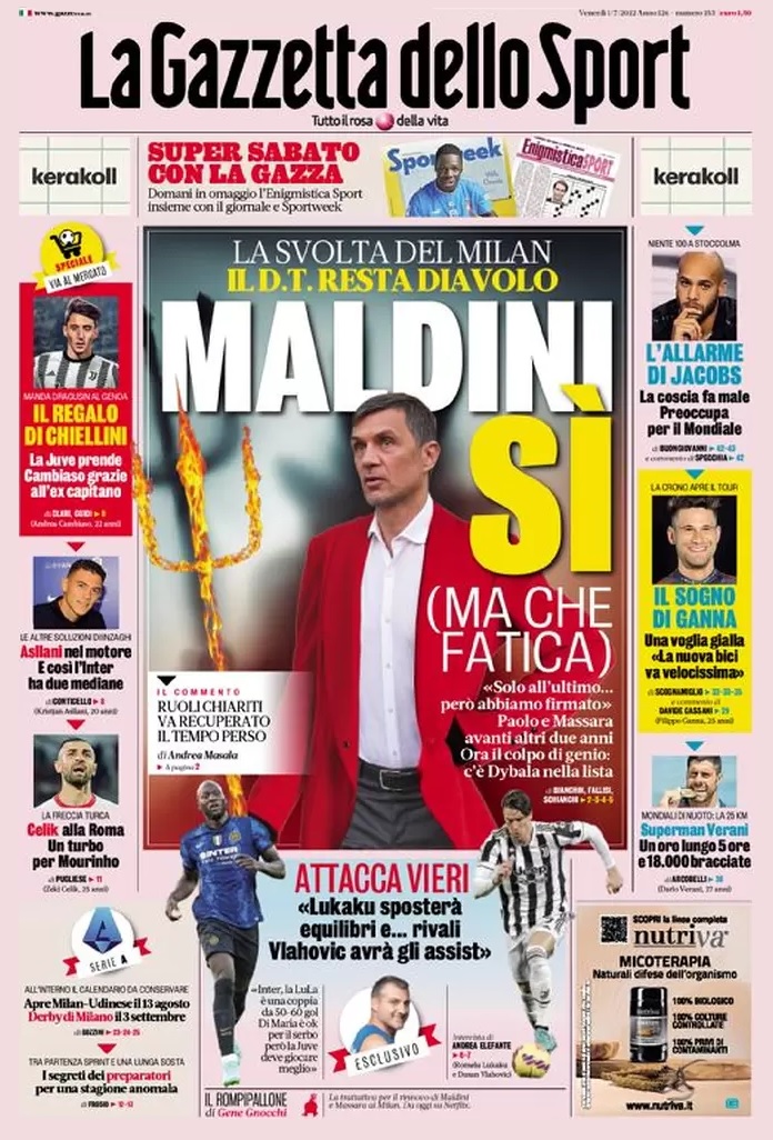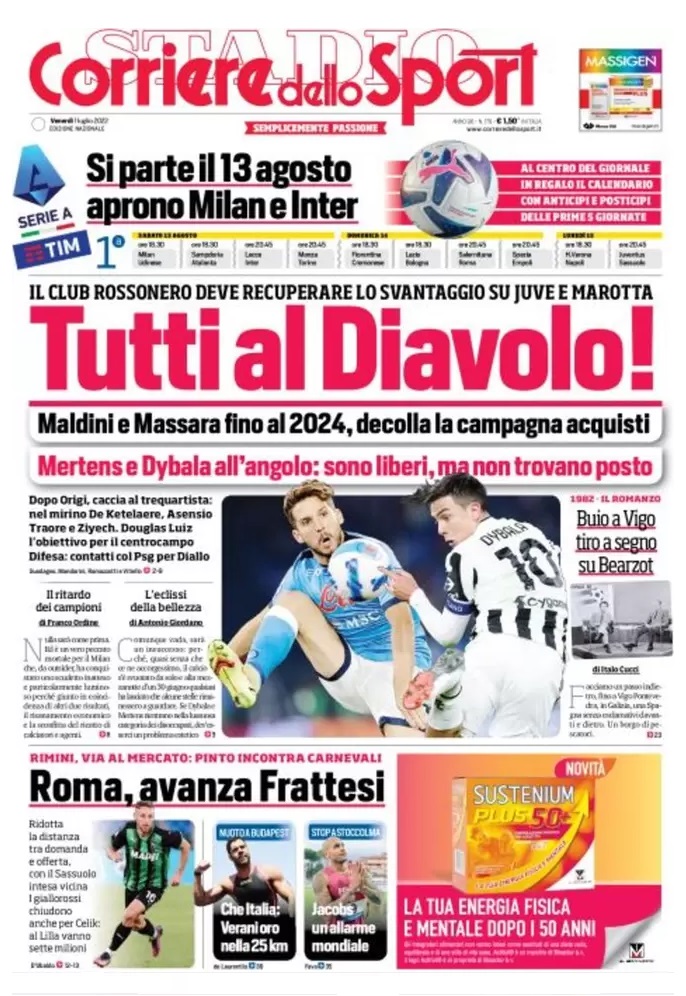 Le prime pagine dei quotidiani sportivi italiani di oggi 1 luglio 2022. La rassegna stampa delle notizie sui rossoneri di Pioli