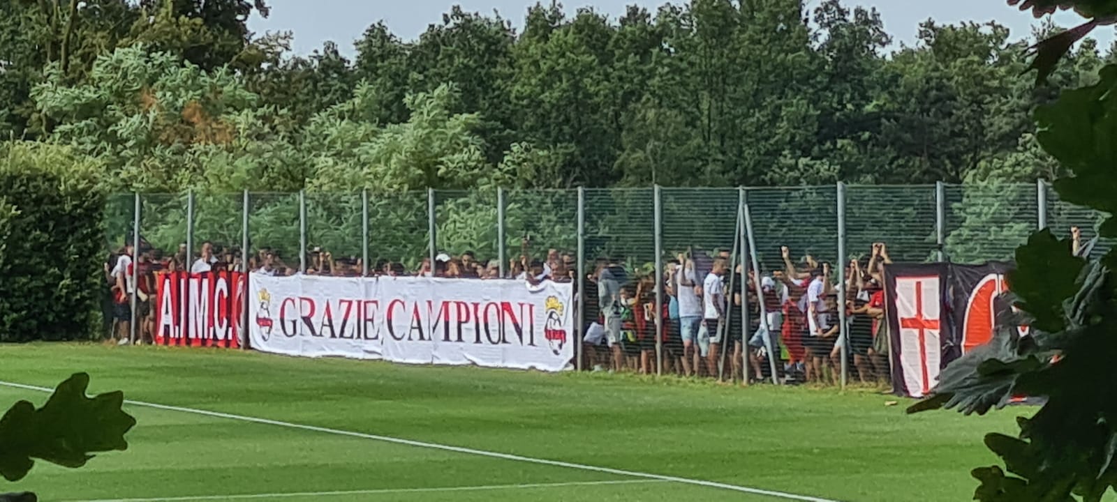 Non è, come previsto, mancata l’accoglienza del pubblico rossonero che in quasi 5000 hanno insediato il centro sportivo di Carnago. Una delegazione della Curva Sud ha addirittura voluto celebrare la squadra e lo straordinario trionfo della passata stagione con uno striscione ‘ad hoc’.