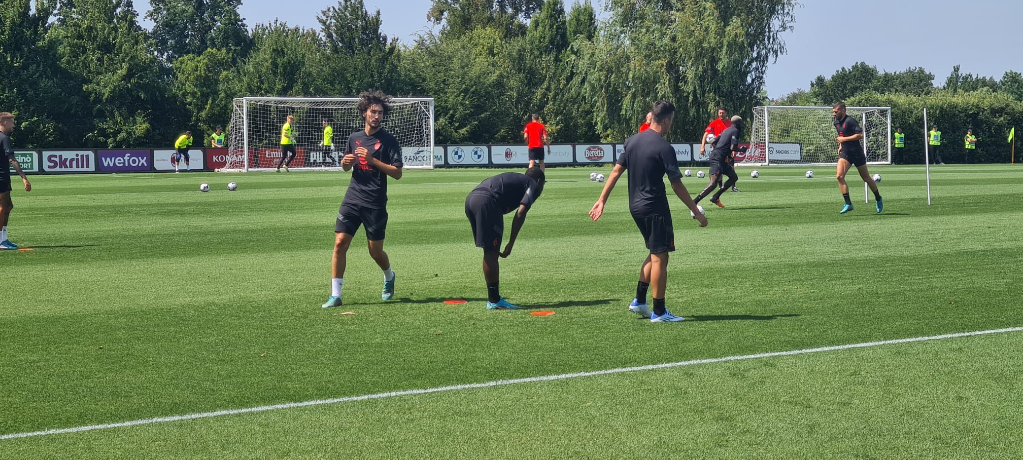 Aria si serenità anche tra i dirigenti dopo le voci di presunti dissidi avvenute durante le trattative per i rinnovi di Maldini e Massara. Oggi i tre dirigenti chiacchierano allegramente a bordo campo mentre la squadra si allena per la prima volta in questa stagione.