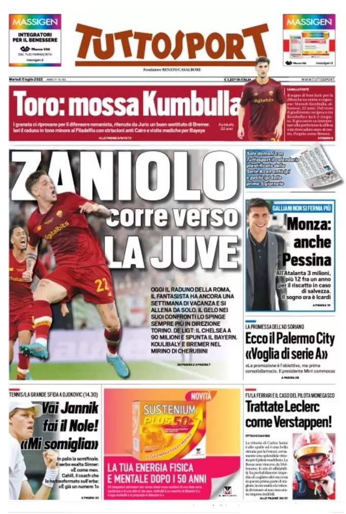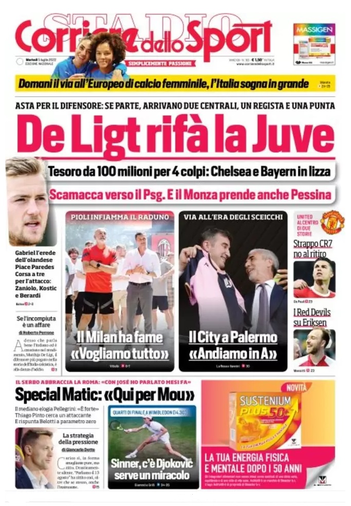 Le prime pagine dei quotidiani sportivi italiani di oggi 5 luglio 2022. La rassegna stampa delle notizie sui rossoneri di PioliGazzetta dello SportCorriere dello SportTuttosport