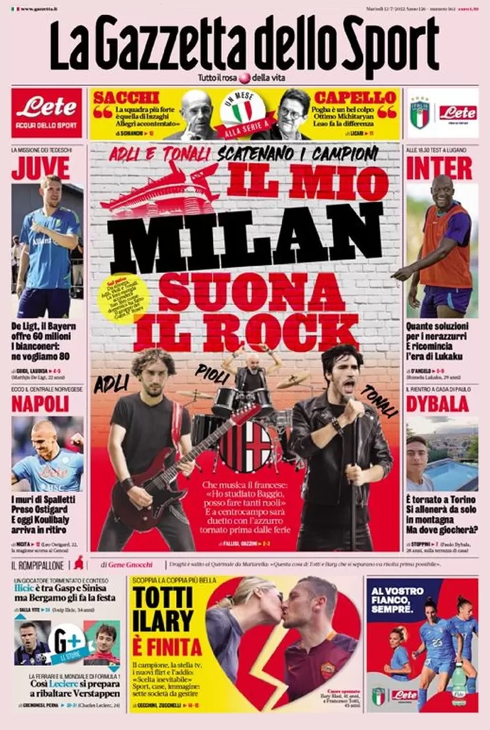 Le prime pagine dei quotidiani sportivi italiani di oggi 12 luglio 2022. La rassegna stampa delle notizie sui rossoneri di Pioli