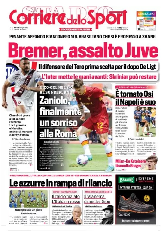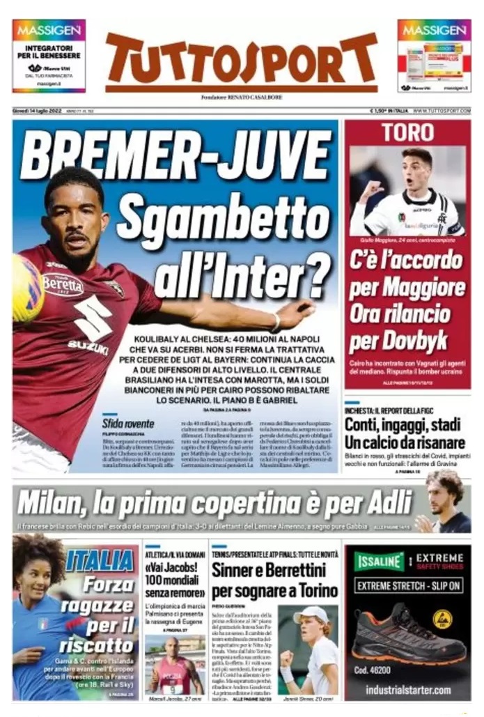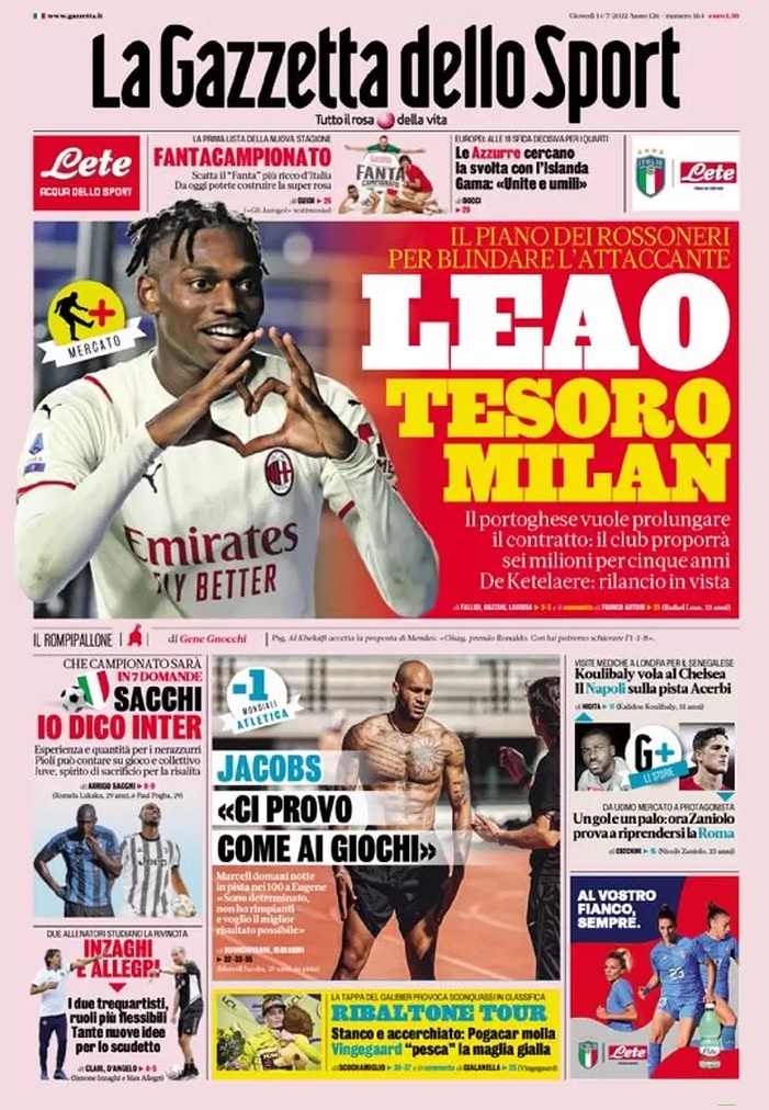 Le prime pagine dei quotidiani sportivi italiani di oggi 14 luglio 2022. La rassegna stampa delle notizie sui rossoneri di PioliLa Gazzetta dello SportTuttosportCorriere dello Sport