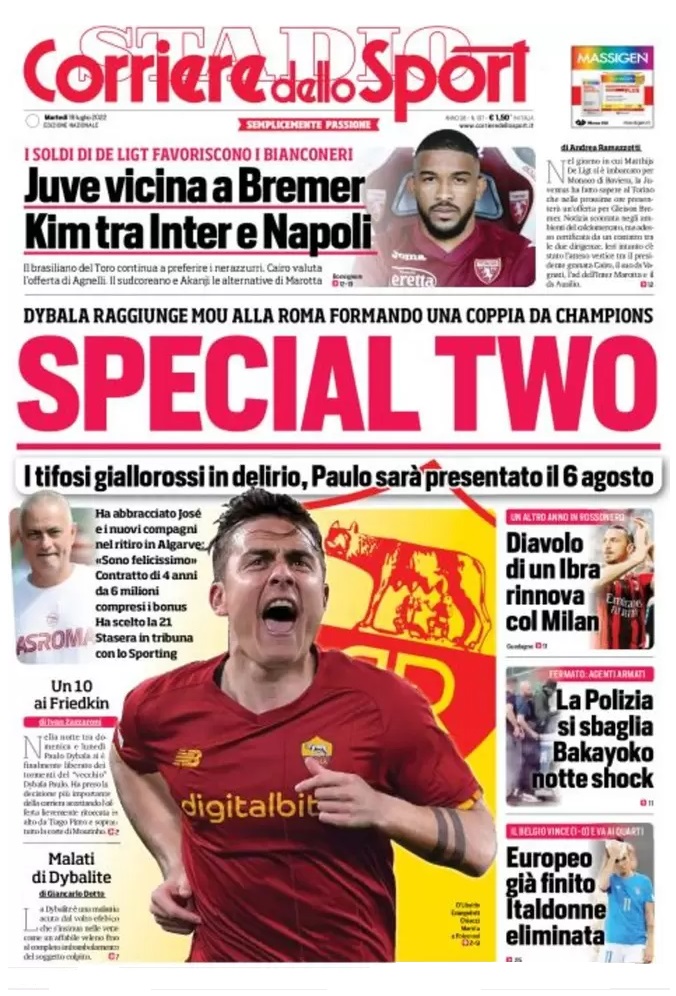 Le prime pagine dei quotidiani sportivi italiani di oggi 19 luglio 2022. La rassegna stampa delle notizie sui rossoneri di PioliGazzetta dello SportTuttosportCorriere dello Sport