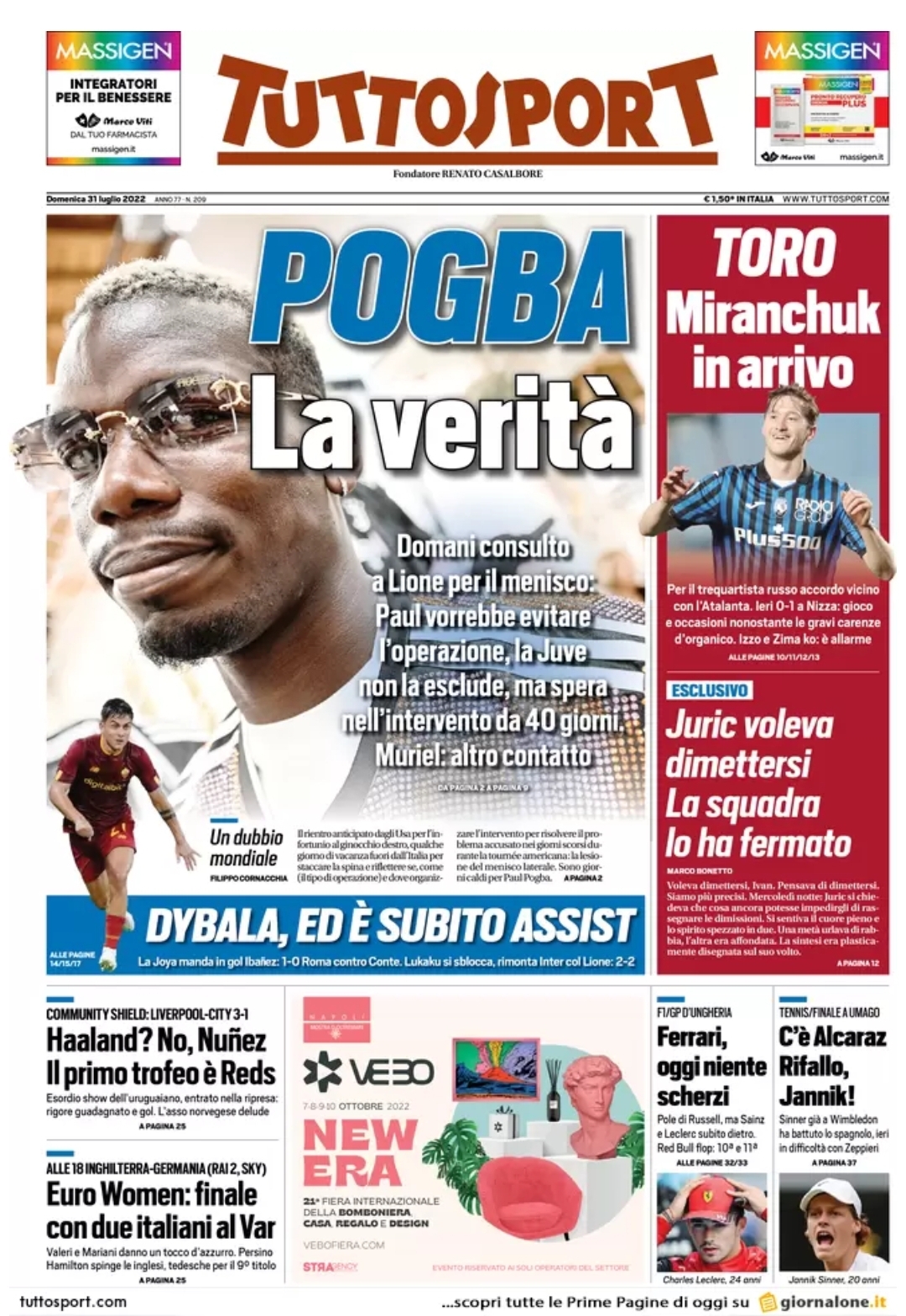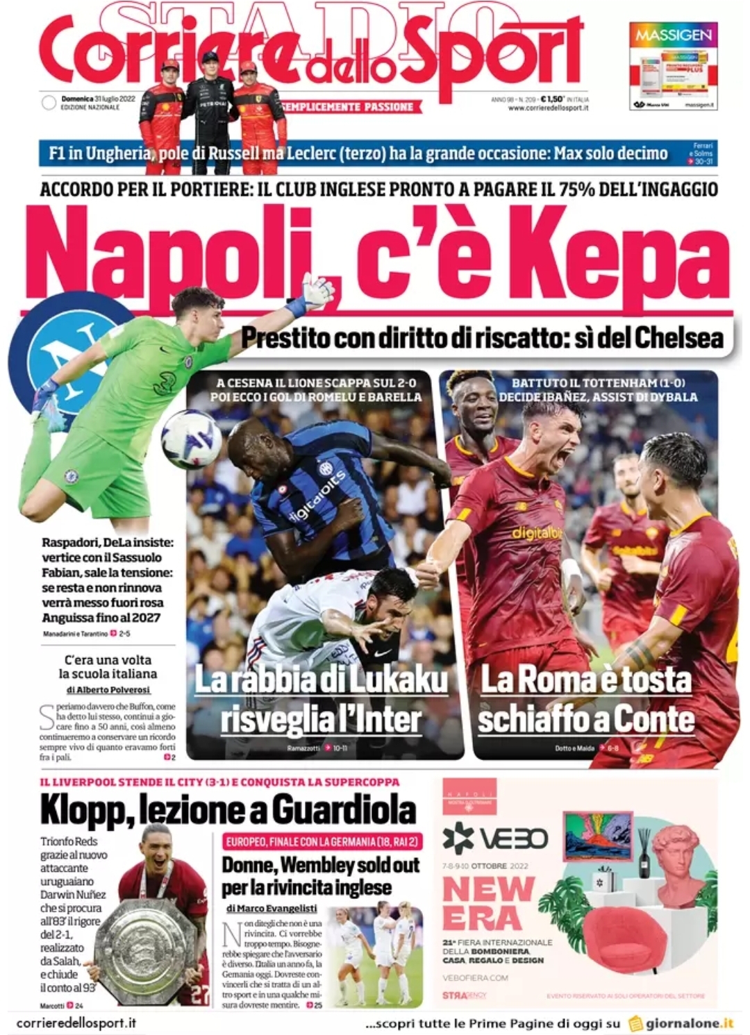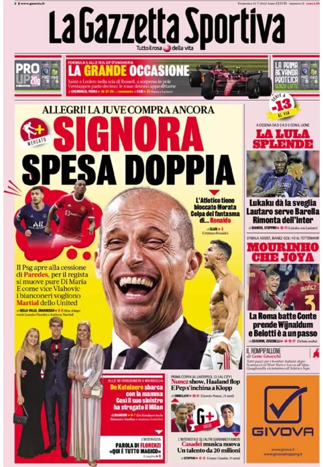 Le prime pagine dei quotidiani italiani di oggi 31 luglio 2022. La rassegna stampa delle notizie sui rossoneri di PioliGazzetta dello Sport –Corriere dello Sport –Tuttosport –