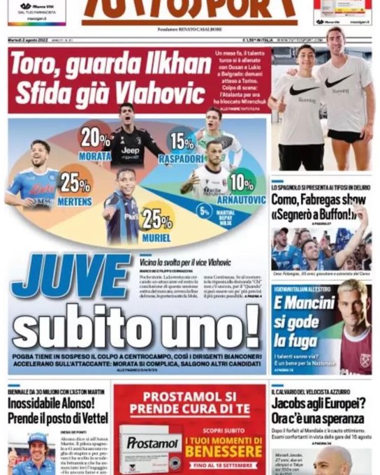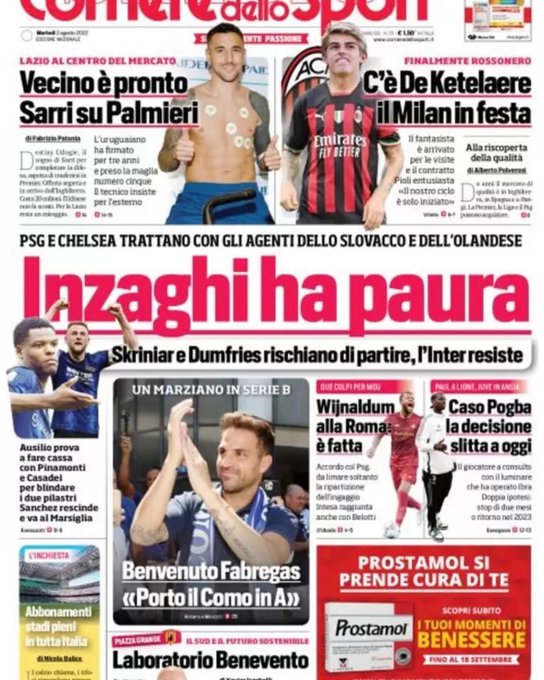 Le prime pagine dei quotidiani sportivi italiani di oggi 2 agosto 2022. La rassegna stampa delle notizie sui rossoneri di PioliGazzetta dello SportTuttosportCorriere dello Sport