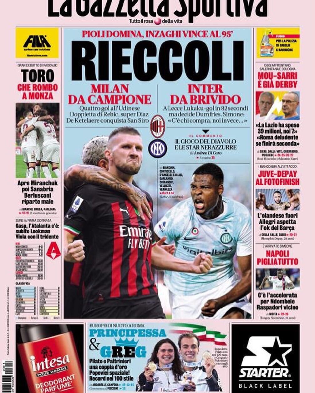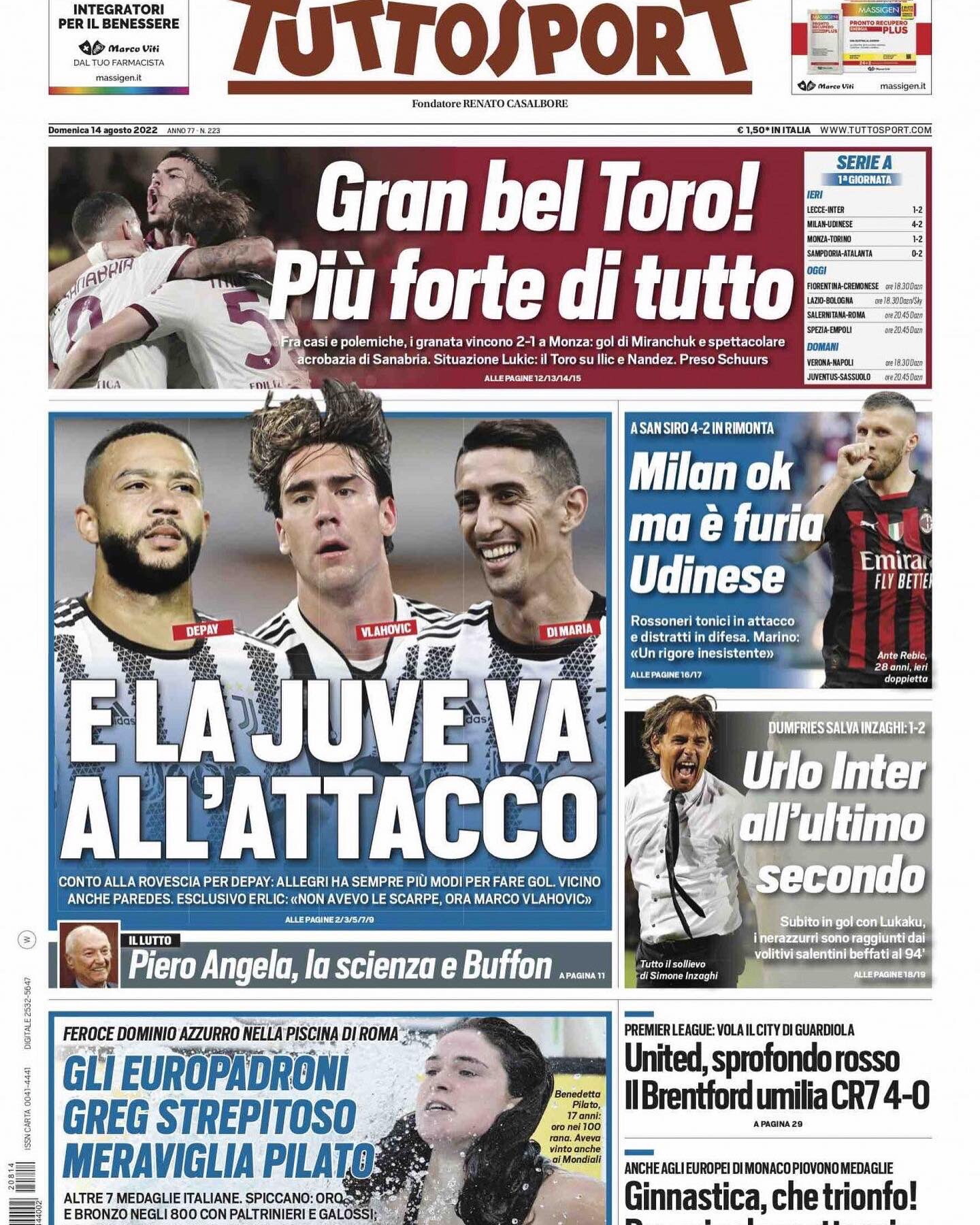 Le prime pagine dei quotidiani sportivi italiani di oggi 14 agosto 2022. La rassegna stampa delle notizie sui rossoneri di PioliGazzetta dello SportCorriere dello SportTuttosport