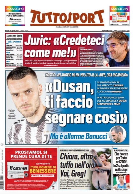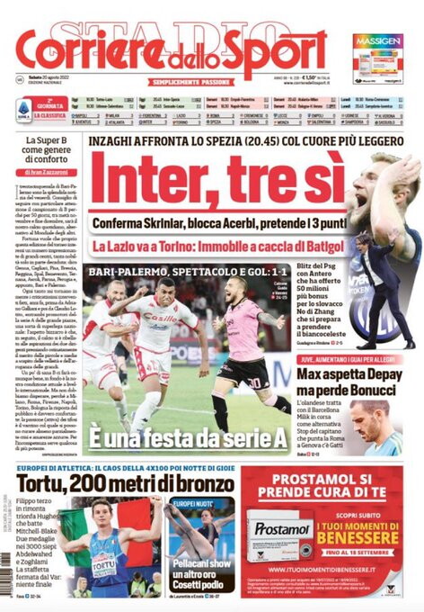 Le prime pagine dei quotidiani sportivi italiani di oggi 20 agosto 2022. La rassegna stampa delle notizie sui rossoneri di PioliGazzetta dello SportCorriere dello SportTuttosport