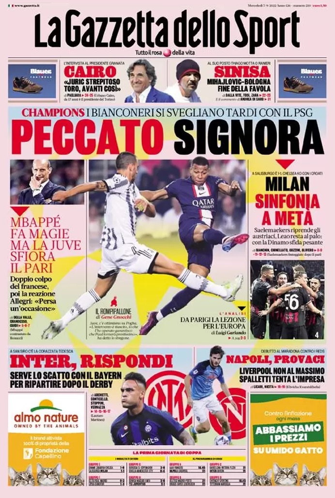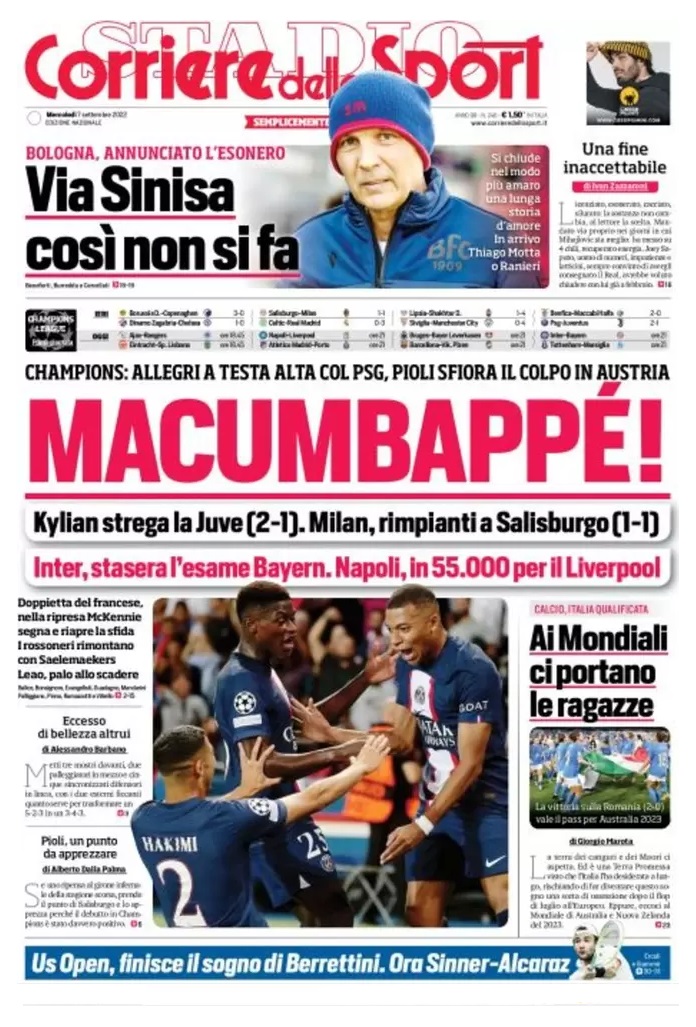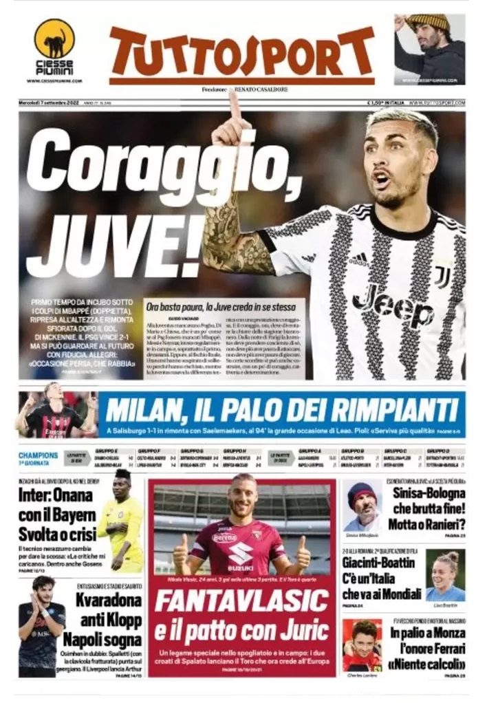 Le prime pagine dei quotidiani sportivi italiani di oggi 7 settembre 2022. La rassegna stampa delle notizie sui rossoneri di Pioli