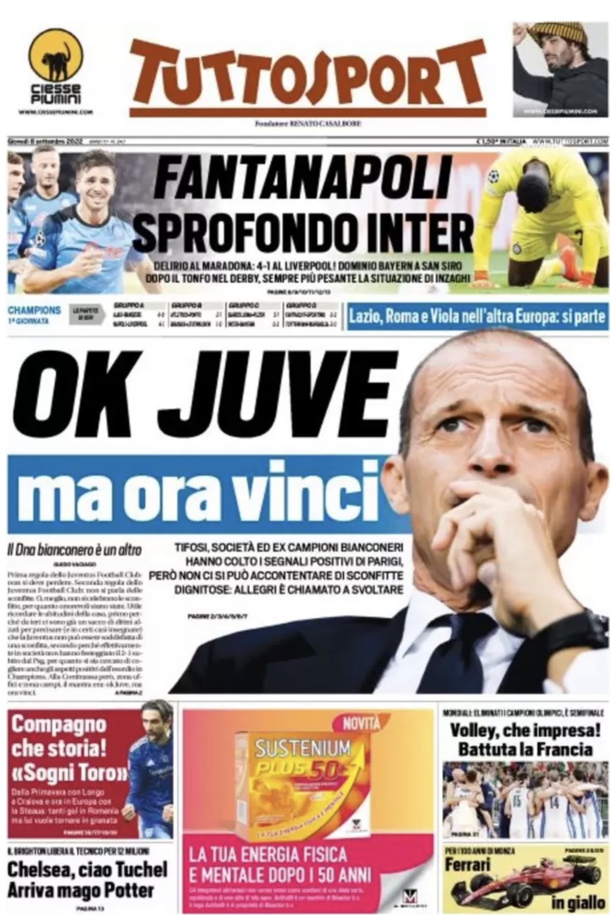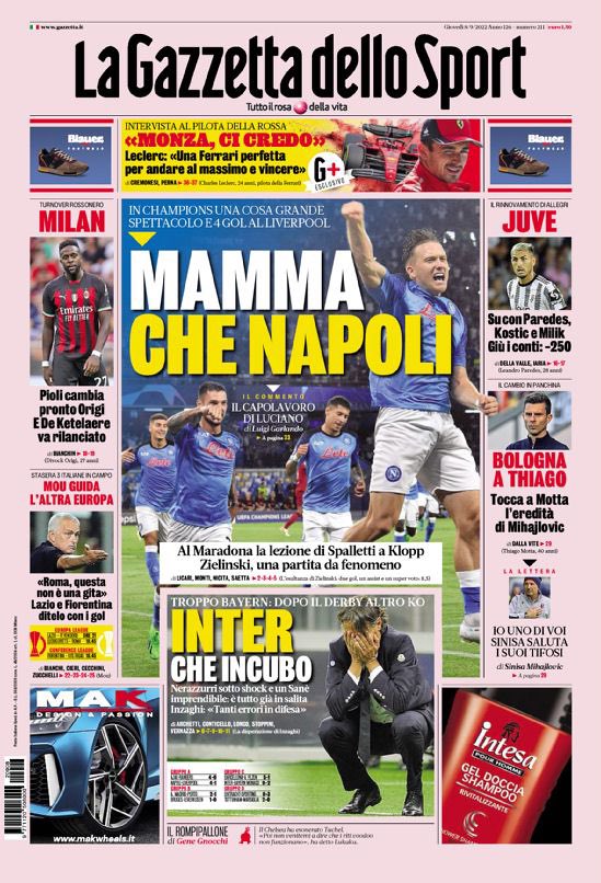 Le prime pagine dei quotidiani sportivi italiani di oggi 8 settembre 2022. La rassegna stampa delle notizie sui rossoneri di PioliGazzetta dello SportCorriere dello SportTuttosport