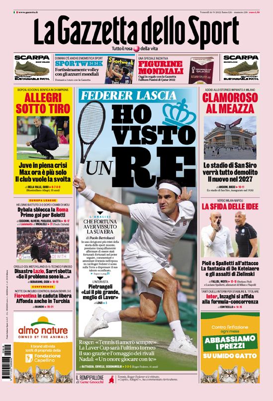 Le prime pagine dei quotidiani sportivi italiani di oggi 16 settembre 2022. La rassegna stampa delle notizie sui rossoneri di PioliGazzetta dello SportCorriere dello SportTuttosport