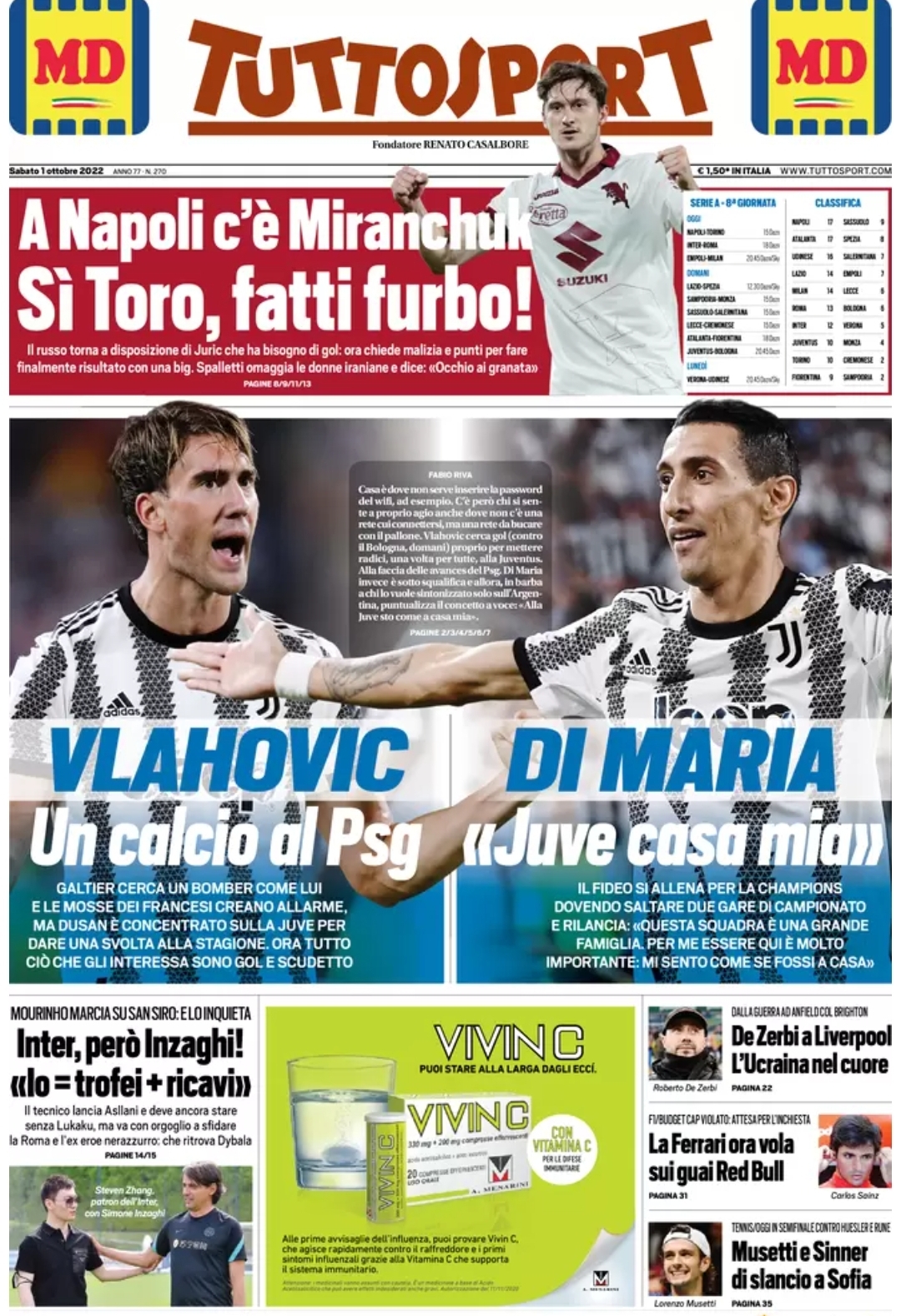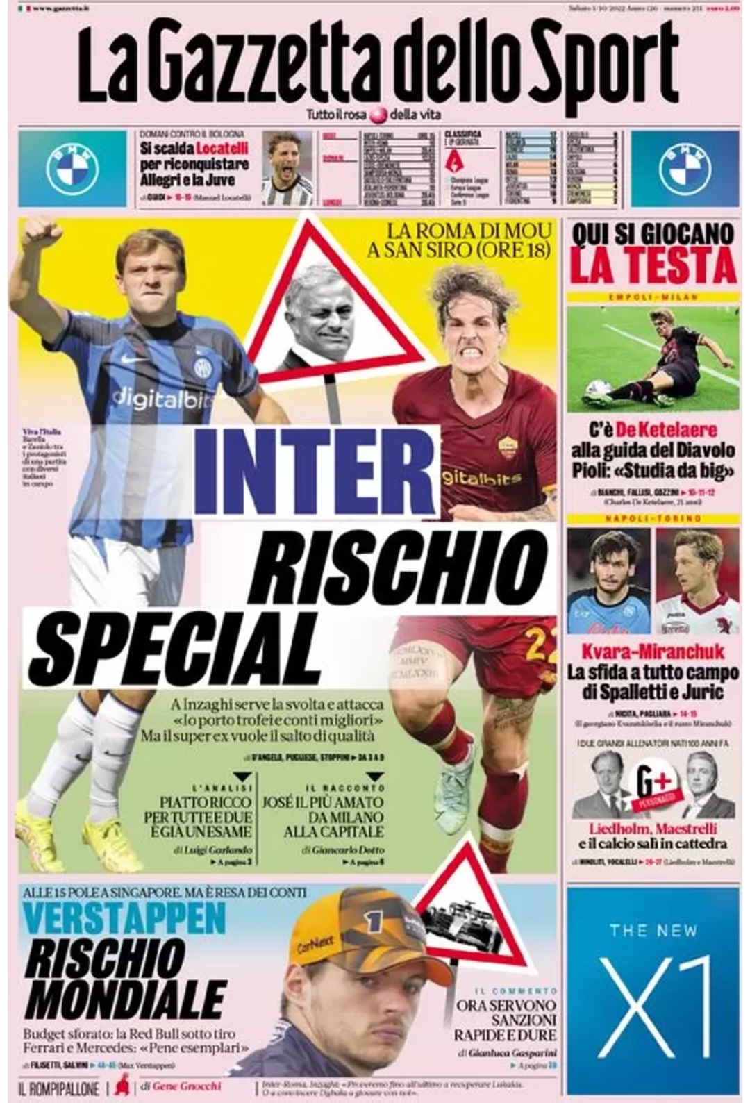 Le prime pagine dei quotidiani sportivi italiani di oggi 1 ottobre 2022. La rassegna stampa delle notizie sui rossoneri di Pioli