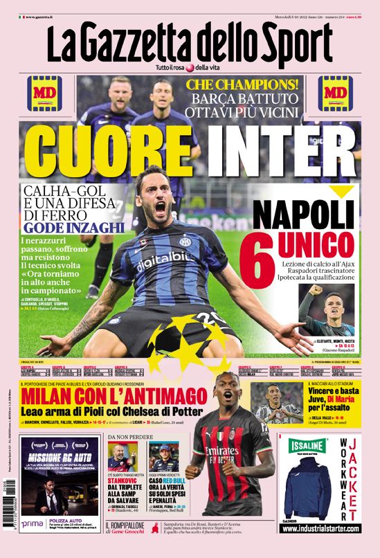 Le prime pagine dei quotidiani sportivi italiani di oggi 5 ottobre 2022. La rassegna stampa delle notizie sui rossoneri di PioliGazzetta dello SportCorriere dello SportTutto Sport