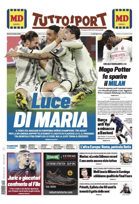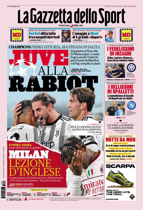 Le prime pagine dei quotidiani sportivi italiani di oggi 6 ottobre 2022. La rassegna stampa delle notizie sui rossoneri di Pioli