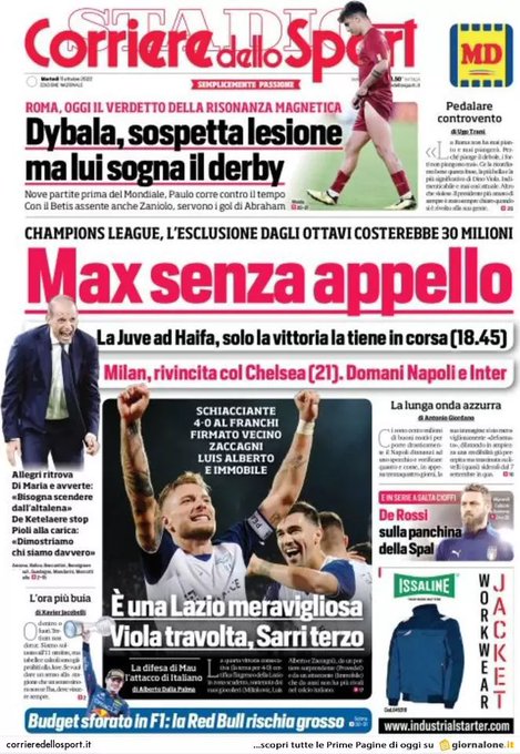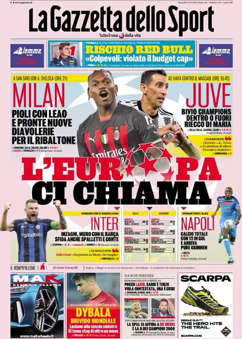 Le prime pagine dei quotidiani sportivi italiani di oggi 11 ottobre 2022. La rassegna stampa delle notizie sui rossoneri di Pioli