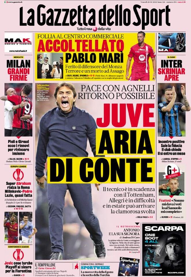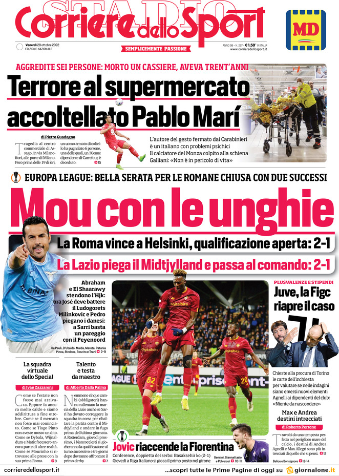 Le prime pagine dei quotidiani sportivi italiani di oggi 28 ottobre 2022. La rassegna stampa delle notizie sui rossoneri di Pioli