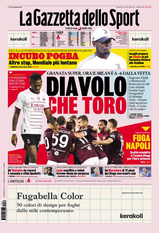 Le prime pagine dei quotidiani sportivi italiani di oggi 31 ottobre 2022. La rassegna stampa delle notizie sui rossoneri di PioliGazzetta dello Sport Corriere dello Sport Tutto Sport