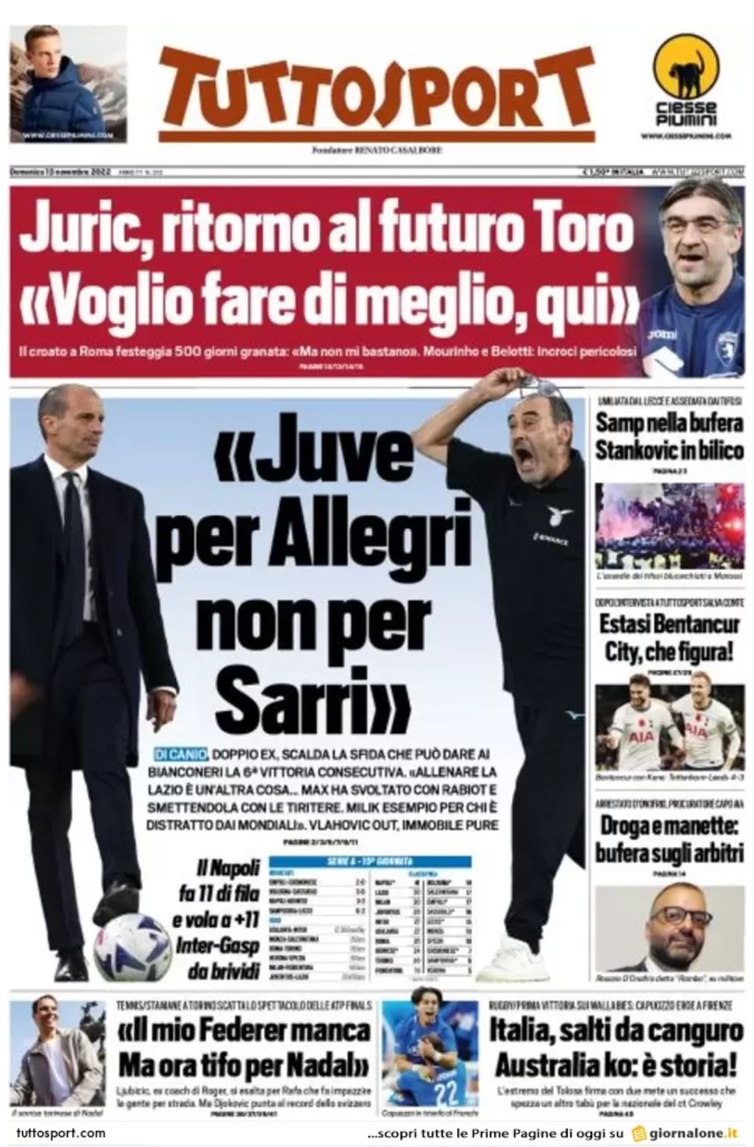 Le prime pagine dei quotidiani sportivi italiani di oggi 13 novembre 2022. La rassegna stampa delle notizie sui rossoneri di Pioli