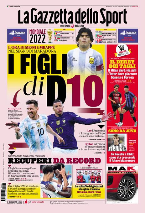 Le prime pagine dei quotidiani sportivi italiani di oggi 22 novembre 2022. La rassegna stampa delle notizie sui rossoneri di PioliGazzetta dello SportCorriere dello SportTuttosport