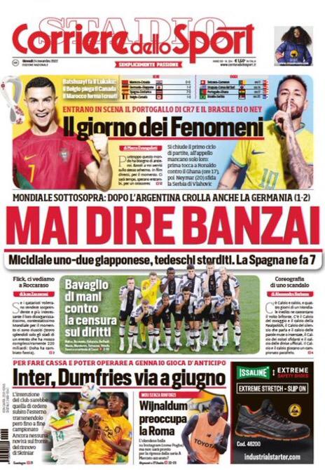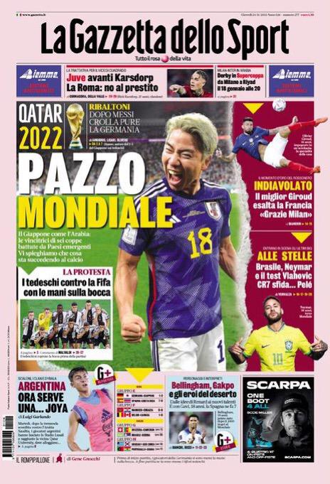 Le prime pagine dei quotidiani sportivi italiani di oggi 24 novembre 2022. La rassegna stampa delle notizie sui rossoneri di Pioli