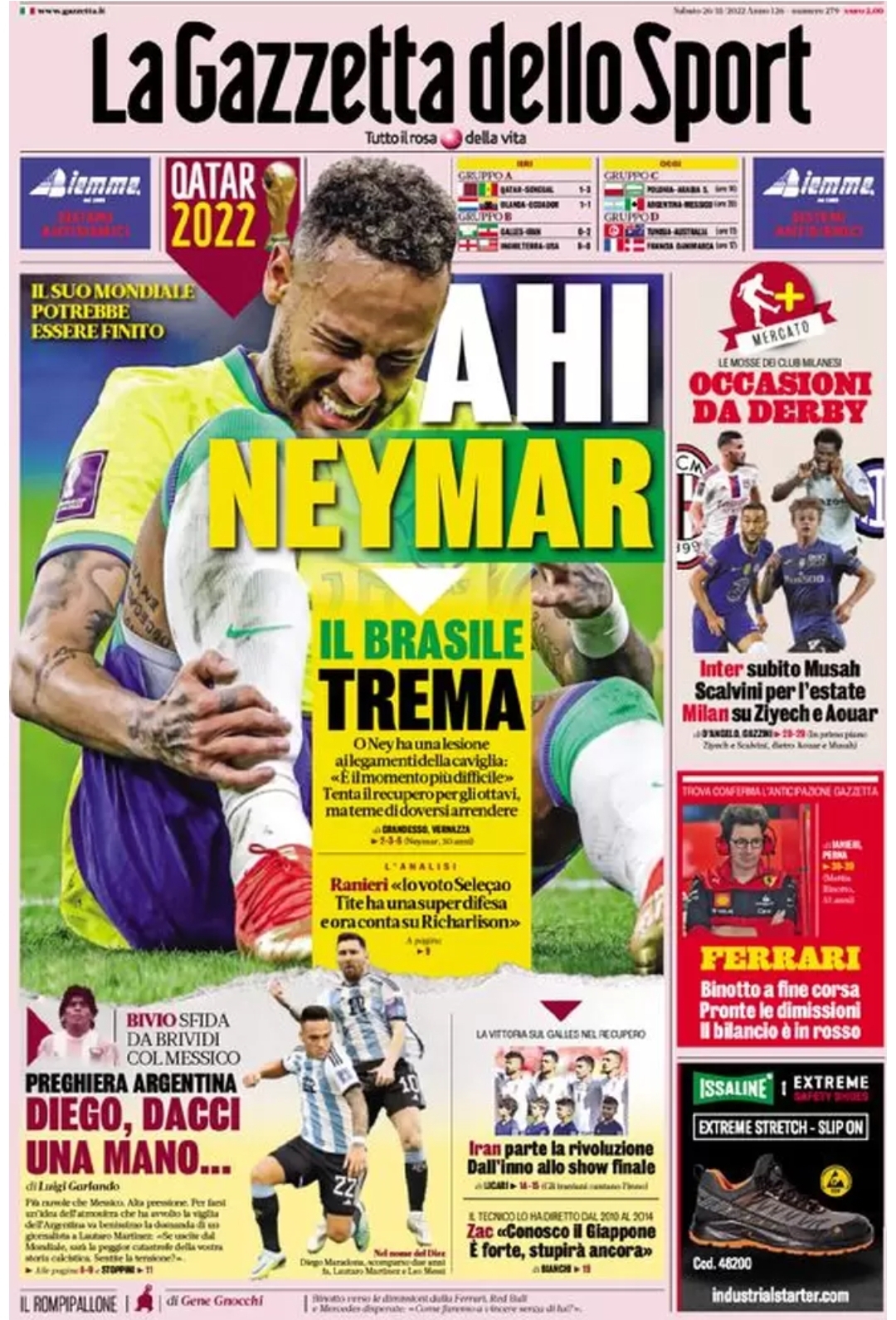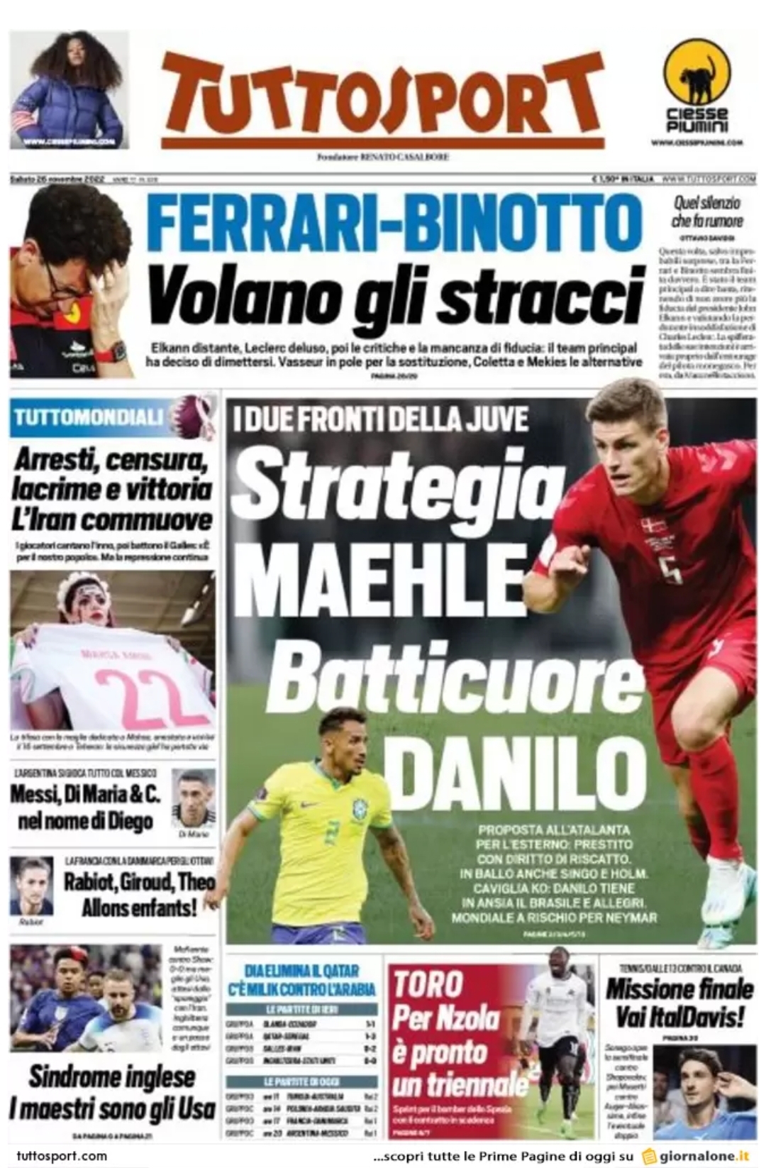 Le prime pagine dei quotidiani sportivi italiani di oggi 26 novembre 2022. La rassegna stampa delle notizie sui rossoneri di PioliGazzetta dello SportCorriere dello SportTuttosport