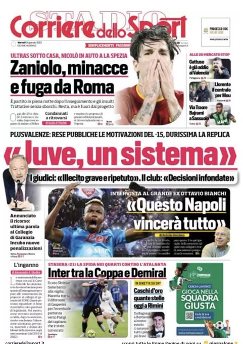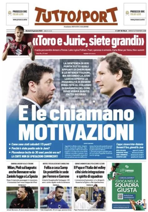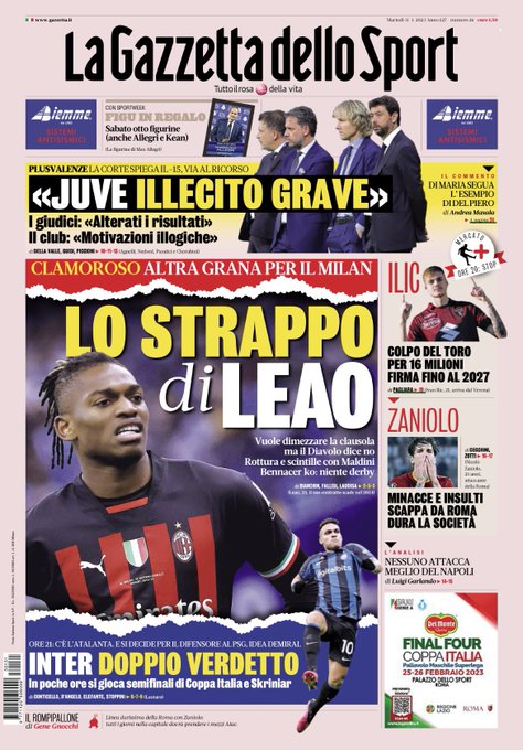 Le prime pagine dei quotidiani sportivi italiani di oggi 31 gennaio 2023. La rassegna stampa delle notizie sui rossoneriGazzetta dello SportCorriere dello SportTuttosport
