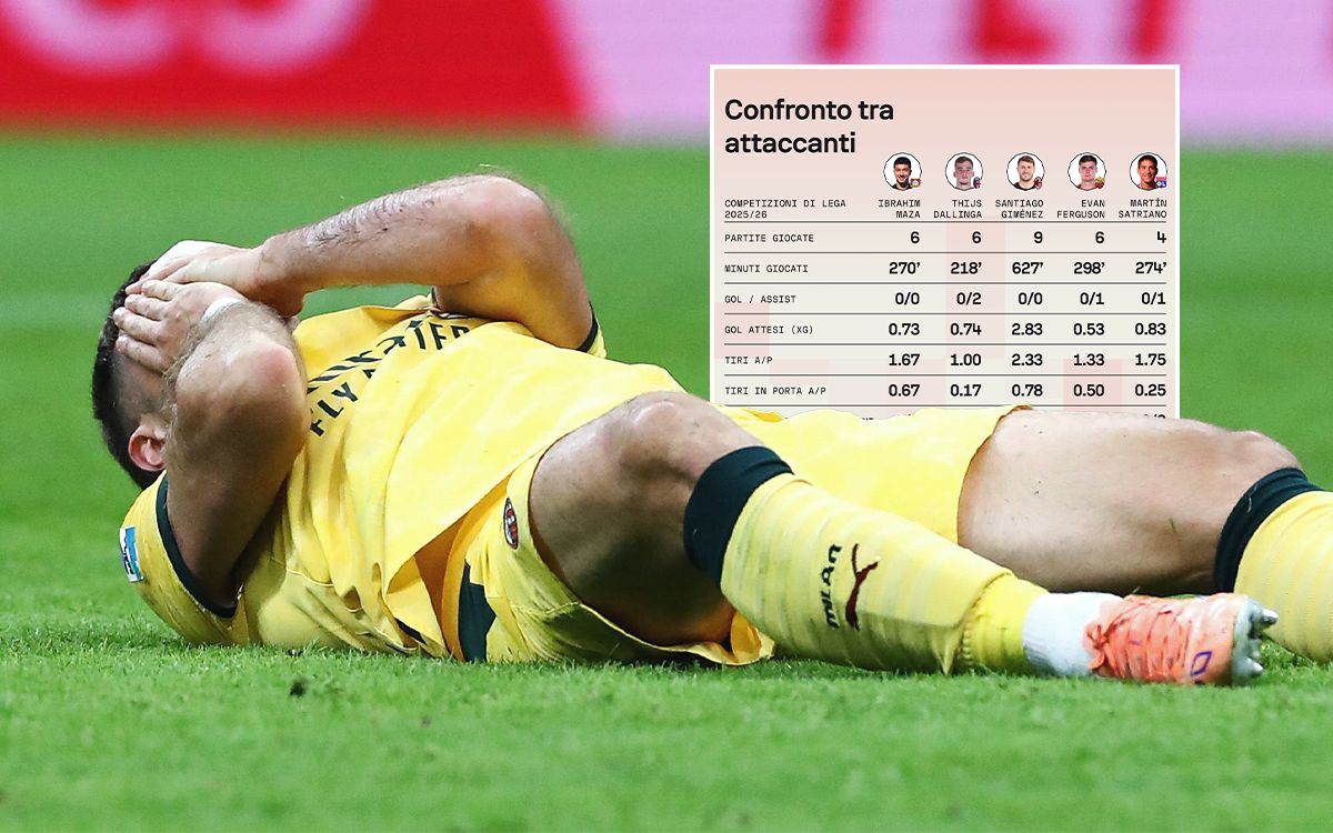 Secondo i dati raccolti dalla Gazzetta dello Sport con Sofascore e Opta, Gimenez ha disputato finora 627 minuti in campionato senza trovare la via del gol. Un rendimento che lo colloca al livello di altri attaccanti in difficoltà come Ibrahim Maza (Bayer Leverkusen), Thijs Dallinga (Bologna), Evan Ferguson (Roma) e Martin Satriano.