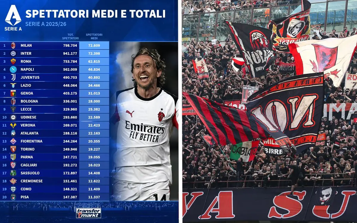La media spettatori del Milan è impressionante: 72.609 tifosi a partita, per un totale complessivo di 798.704 presenze fino a questo momento. Un dato che conferma il forte legame tra squadra e pubblico, oltre alla capacità del club di riempire costantemente lo stadio.